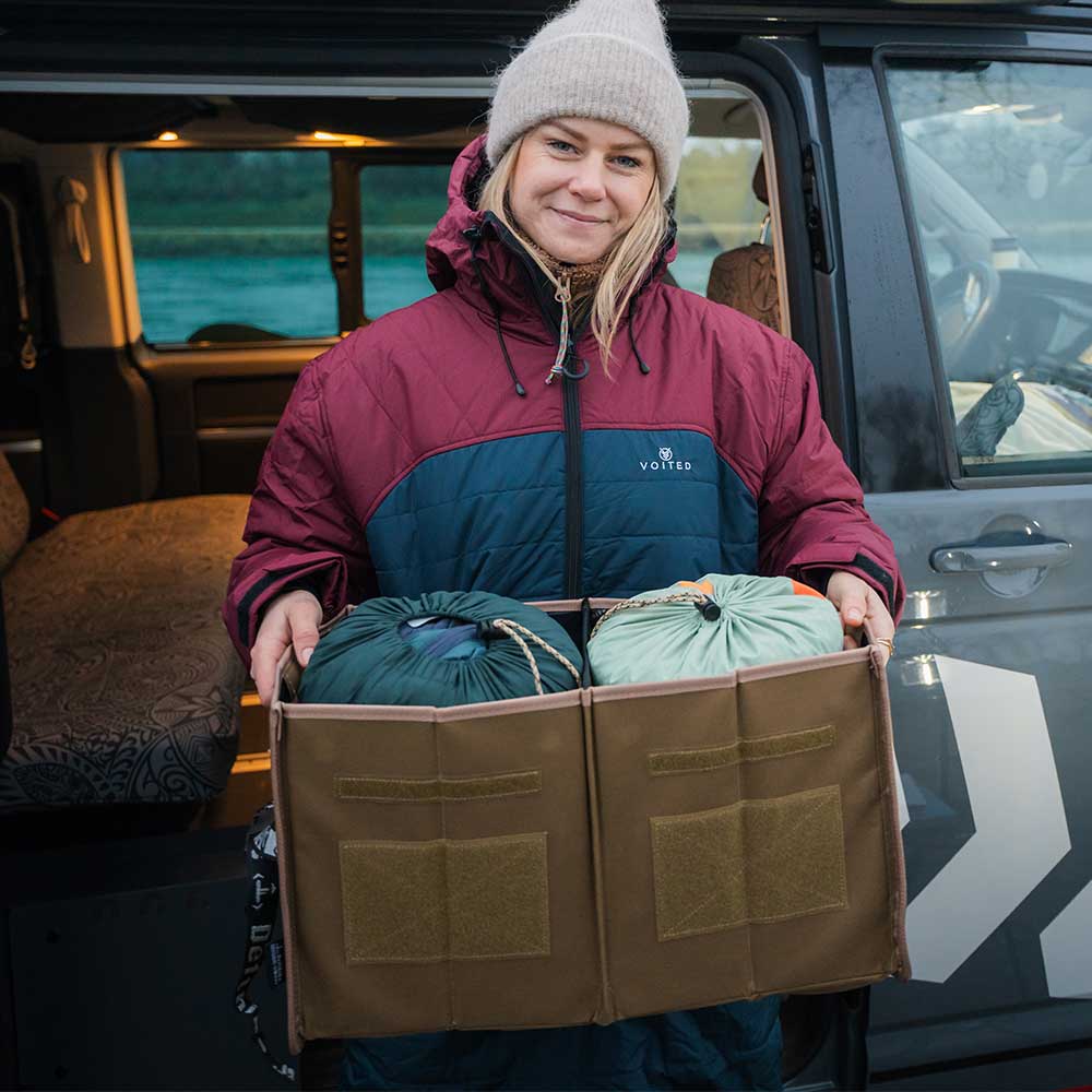 Die faltbare Aufbewahrungsbox bietet mit 40 Litern Volumen reichlich Stauraum für Outdoor-Abenteuer. Platzsparend zusammenklappbar und leicht zu verstauen, lässt sie sich dank stabiler Griffe auch voll beladen bequem tragen.
